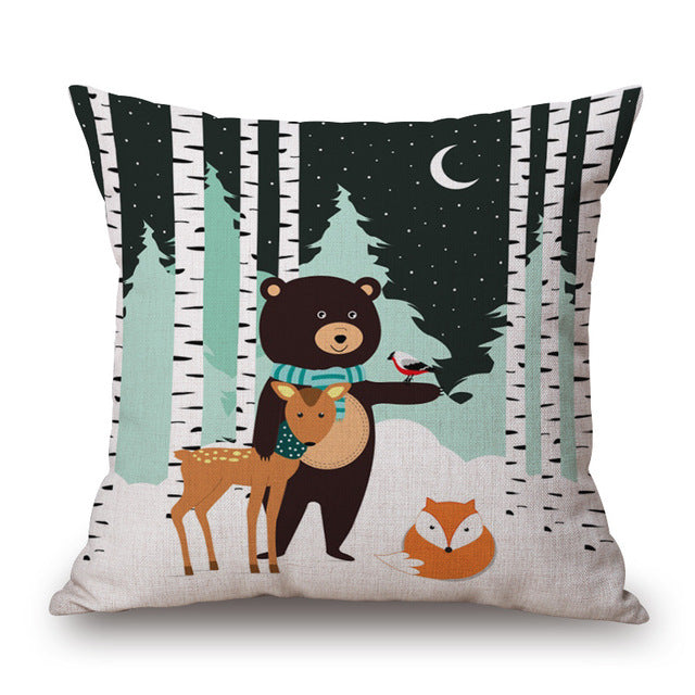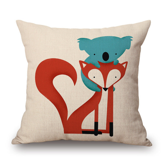 Fox-Bear-Cat-Whale Cushion Cover