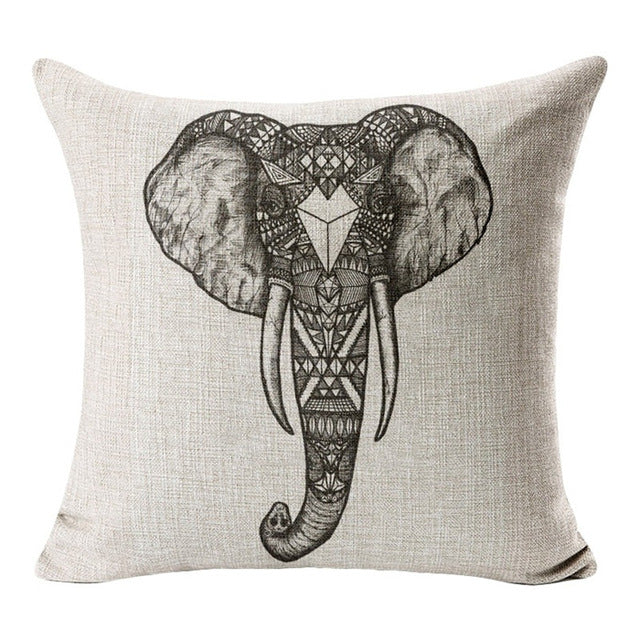 High Qulity Cotton Linen Elephant skull wolf Printed Decorative Cushion Cover Pillow Case Car Seat 45*45cm Pillowcase XJBZT205