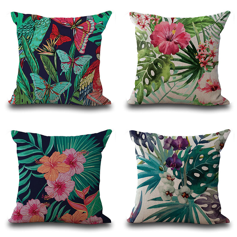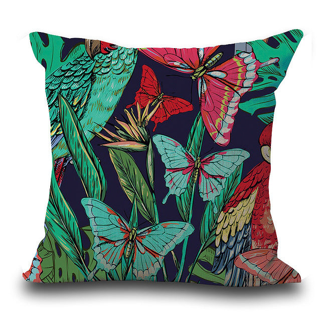 Leaf Butterfly Flower Pattern Pillowcase Colorful Pillow Cover Pillowcase 45 x 45cm