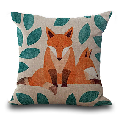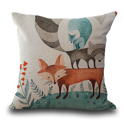 Square 18" Cotton Linen Cartoon Red Fox Car Decorative Throw Cushion Cover Home Decor Sofa Pillow Case