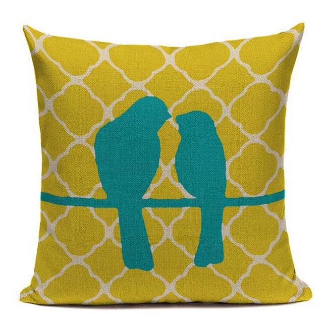 Yellow Color LOVE Bird Cushions Cover